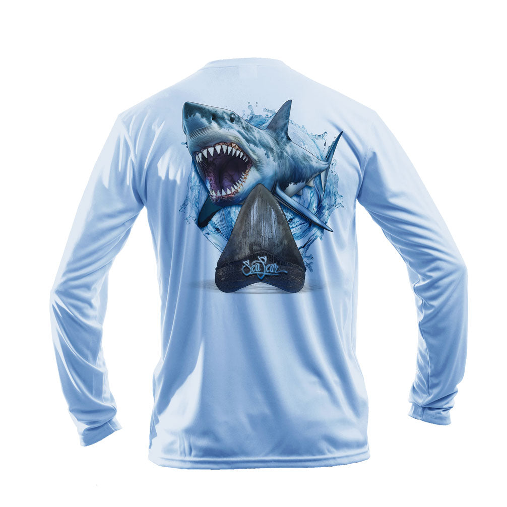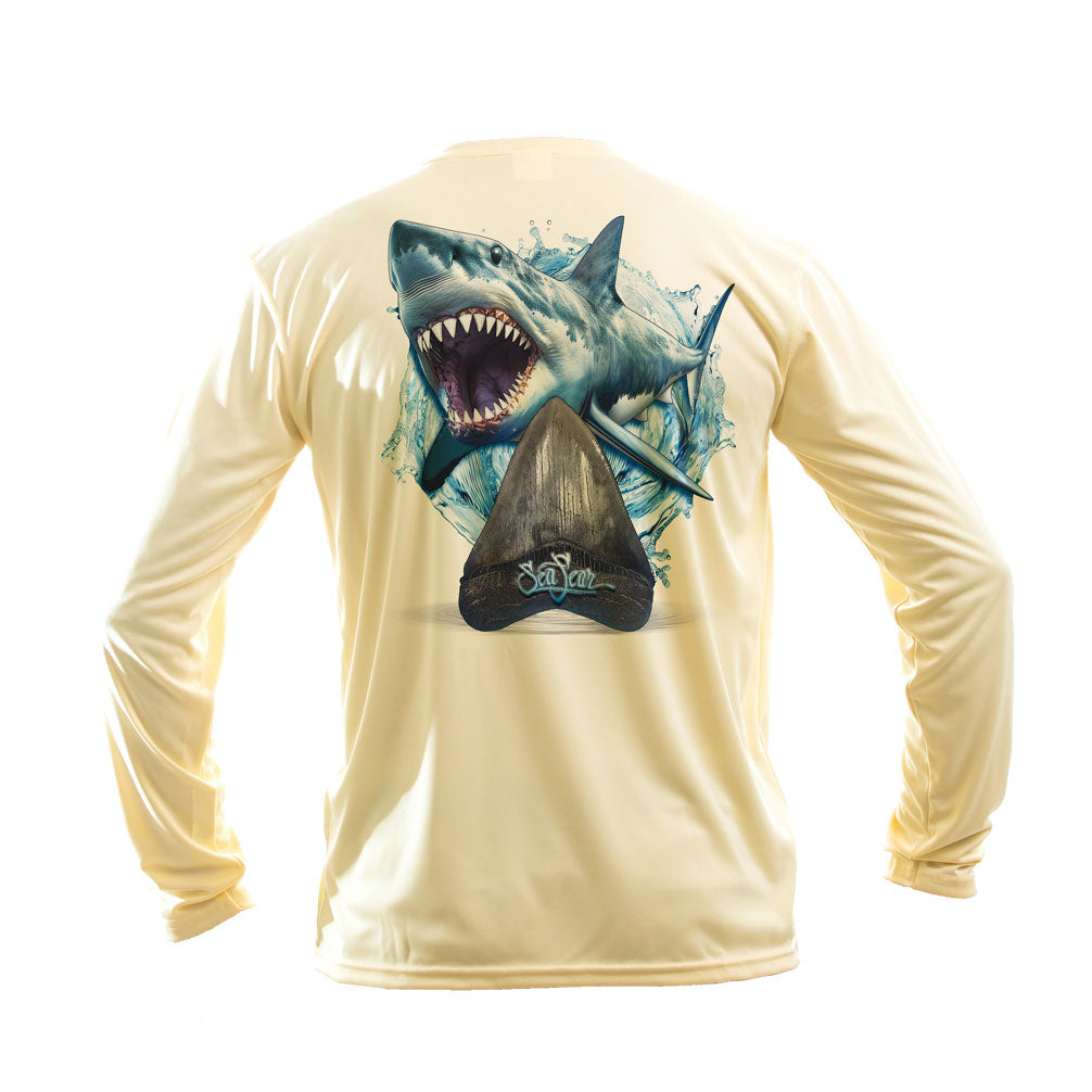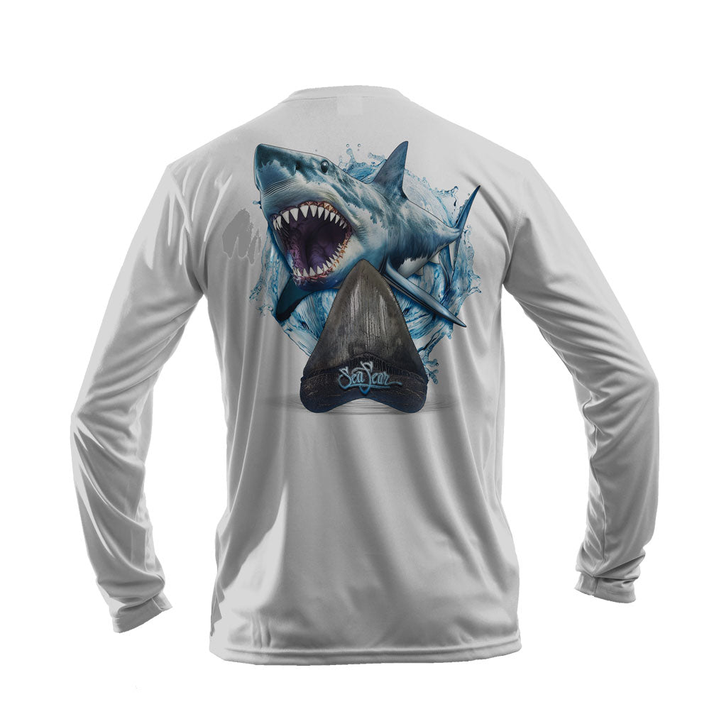 {"id":8350396285114,"title":"Megalodon Long Sleeve Performance Tee","handle":"megaladon-long-sleeve-performance-tee-copy","description":"\u003cp\u003e\u003cspan style=\"color: #000000;\"\u003e\u003cstrong\u003eThe\u003c\/strong\u003e\u003cstrong\u003e Megalodon design on a High Performance Long Sleeve Tee! The process used to print this shirt is state of the art technology! The image on this tee is the quality of a high resolution camera!\u003c\/strong\u003e\u003c\/span\u003e\u003c\/p\u003e\n\u003cul\u003e\n\u003cli\u003e\u003cspan style=\"color: #000000;\"\u003e\u003cstrong\u003eVibrant colors wash after wash.\u003c\/strong\u003e\u003c\/span\u003e\u003c\/li\u003e\n\u003cli\u003e\n\u003cspan style=\"color: #000000;\"\u003e \u003cstrong\u003eInk is infused into the shirt fibers which makes for a super soft print that doesn't stick to you \u003c\/strong\u003e\u003c\/span\u003e\u003cbr\u003e\u003cspan style=\"color: #000000;\"\u003e\u003cstrong\u003ein the heat of summer.\u003c\/strong\u003e \u003c\/span\u003e\n\u003c\/li\u003e\n\u003cli\u003e\u003cspan style=\"color: #000000;\"\u003e\u003cstrong\u003eUPF 50+ sun protection.\u003c\/strong\u003e\u003c\/span\u003e\u003c\/li\u003e\n\u003cli\u003e\u003cspan style=\"color: #000000;\"\u003e\u003cstrong\u003eYou can swim, dive, fish, or just relax in these tees.\u003c\/strong\u003e\u003c\/span\u003e\u003c\/li\u003e\n\u003cli\u003e\u003cspan style=\"color: #000000;\"\u003e\u003cstrong\u003eMoisture wicking, quick drying, comfort, and sun protection.\u003c\/strong\u003e\u003c\/span\u003e\u003c\/li\u003e\n\u003c\/ul\u003e\n\u003cp\u003e\u003cspan style=\"color: #000000;\"\u003e\u003cstrong\u003ePlus a great design!\u003c\/strong\u003e\u003c\/span\u003e\u003c\/p\u003e","published_at":"2026-03-02T10:45:57-05:00","created_at":"2026-03-02T10:22:22-05:00","vendor":"Various","type":"Shirts","tags":["shark","shirt"],"price":4199,"price_min":4199,"price_max":4399,"available":true,"price_varies":true,"compare_at_price":null,"compare_at_price_min":0,"compare_at_price_max":0,"compare_at_price_varies":false,"variants":[{"id":45675449286842,"title":"S \/ White","option1":"S","option2":"White","option3":null,"sku":null,"requires_shipping":true,"taxable":true,"featured_image":{"id":40982031335610,"product_id":8350396285114,"position":1,"created_at":"2026-03-02T10:37:10-05:00","updated_at":"2026-03-02T10:52:29-05:00","alt":null,"width":1006,"height":1006,"src":"\/\/seafear.com\/cdn\/shop\/files\/Meg-White.jpg?v=1772466749","variant_ids":[45675449286842,45675449417914,45675449548986,45675449680058,45675449811130,45675449942202]},"available":true,"name":"Megalodon Long Sleeve Performance Tee - S \/ White","public_title":"S \/ White","options":["S","White"],"price":4199,"weight":227,"compare_at_price":null,"inventory_management":"shopify","barcode":null,"featured_media":{"alt":null,"id":31727532540090,"position":1,"preview_image":{"aspect_ratio":1.0,"height":1006,"width":1006,"src":"\/\/seafear.com\/cdn\/shop\/files\/Meg-White.jpg?v=1772466749"}},"requires_selling_plan":false,"selling_plan_allocations":[]},{"id":45675449352378,"title":"S \/ Arctic Blue","option1":"S","option2":"Arctic Blue","option3":null,"sku":null,"requires_shipping":true,"taxable":true,"featured_image":{"id":40982033924282,"product_id":8350396285114,"position":2,"created_at":"2026-03-02T10:38:53-05:00","updated_at":"2026-03-02T10:52:29-05:00","alt":null,"width":1006,"height":1006,"src":"\/\/seafear.com\/cdn\/shop\/files\/Meg-AB.jpg?v=1772466749","variant_ids":[45675449352378,45675449483450,45675449614522,45675449745594,45675449876666,45675450007738]},"available":true,"name":"Megalodon Long Sleeve Performance Tee - S \/ Arctic Blue","public_title":"S \/ Arctic Blue","options":["S","Arctic Blue"],"price":4199,"weight":227,"compare_at_price":null,"inventory_management":"shopify","barcode":null,"featured_media":{"alt":null,"id":31727534833850,"position":2,"preview_image":{"aspect_ratio":1.0,"height":1006,"width":1006,"src":"\/\/seafear.com\/cdn\/shop\/files\/Meg-AB.jpg?v=1772466749"}},"requires_selling_plan":false,"selling_plan_allocations":[]},{"id":45675449319610,"title":"S \/ Pale Yellow","option1":"S","option2":"Pale Yellow","option3":null,"sku":null,"requires_shipping":true,"taxable":true,"featured_image":{"id":40982033105082,"product_id":8350396285114,"position":3,"created_at":"2026-03-02T10:38:15-05:00","updated_at":"2026-03-02T10:41:20-05:00","alt":null,"width":1006,"height":1006,"src":"\/\/seafear.com\/cdn\/shop\/files\/Meg-PY.jpg?v=1772466080","variant_ids":[45675449319610,45675449450682,45675449581754,45675449712826,45675449843898,45675449974970]},"available":true,"name":"Megalodon Long Sleeve Performance Tee - S \/ Pale Yellow","public_title":"S \/ Pale Yellow","options":["S","Pale Yellow"],"price":4199,"weight":227,"compare_at_price":null,"inventory_management":"shopify","barcode":null,"featured_media":{"alt":null,"id":31727534014650,"position":3,"preview_image":{"aspect_ratio":1.0,"height":1006,"width":1006,"src":"\/\/seafear.com\/cdn\/shop\/files\/Meg-PY.jpg?v=1772466080"}},"requires_selling_plan":false,"selling_plan_allocations":[]},{"id":45675449254074,"title":"S \/ Gray","option1":"S","option2":"Gray","option3":null,"sku":null,"requires_shipping":true,"taxable":true,"featured_image":{"id":40982032679098,"product_id":8350396285114,"position":4,"created_at":"2026-03-02T10:37:51-05:00","updated_at":"2026-03-02T10:41:20-05:00","alt":null,"width":1006,"height":1006,"src":"\/\/seafear.com\/cdn\/shop\/files\/Meg-Gray.jpg?v=1772466080","variant_ids":[45675449254074,45675449385146,45675449516218,45675449647290,45675449778362,45675449909434]},"available":true,"name":"Megalodon Long Sleeve Performance Tee - S \/ Gray","public_title":"S \/ Gray","options":["S","Gray"],"price":4199,"weight":227,"compare_at_price":null,"inventory_management":"shopify","barcode":null,"featured_media":{"alt":null,"id":31727533654202,"position":4,"preview_image":{"aspect_ratio":1.0,"height":1006,"width":1006,"src":"\/\